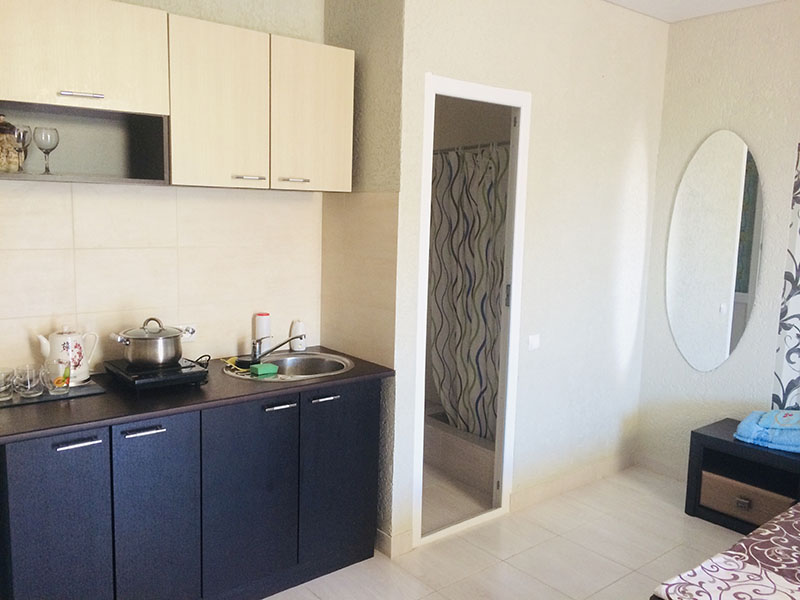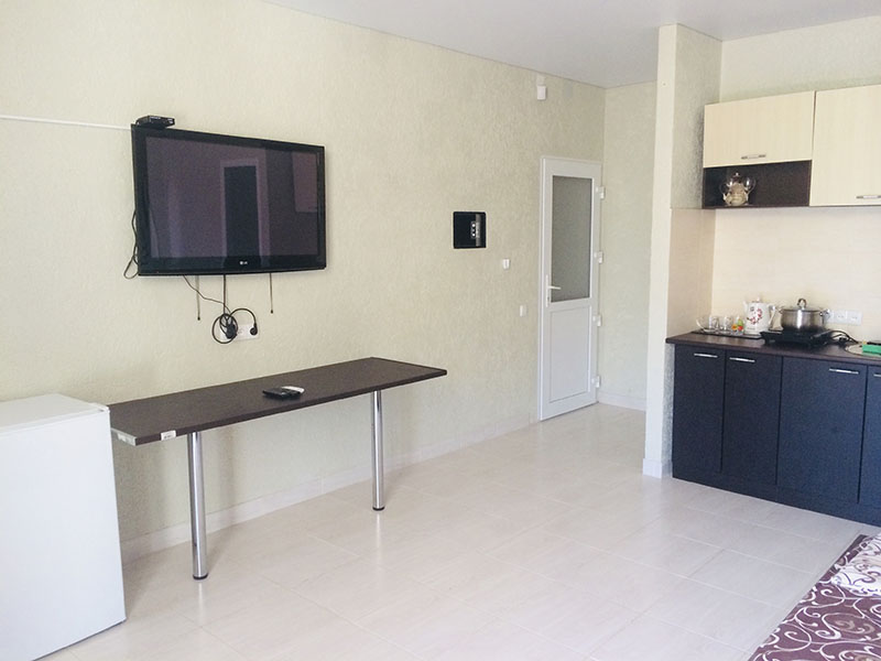Мини-гостиница "Премьера" предлагает гостям курорта отличные условия размещения и свое искреннее гостеприимство. Четырехэтажное здание гостевого дома расположено на первой береговой линии, всего в 70 метрах от пляжа. Номерной фонд "Премьеры" представлен просторными номерами категорий "стандарт" и "люкс" со всеми удобствами, рассчитанными на 3 человек. Каждый из номеров укомплектован отличной мебелью, современной техникой, санузлами. В большинстве номеров имеются балконы, откуда открывается восхитительный вид на море и гору Кошку.